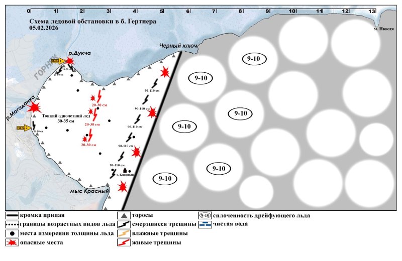1.7.1 Обстановка в бухте Гертнера по состоянию на 05 февраля 2026 года.