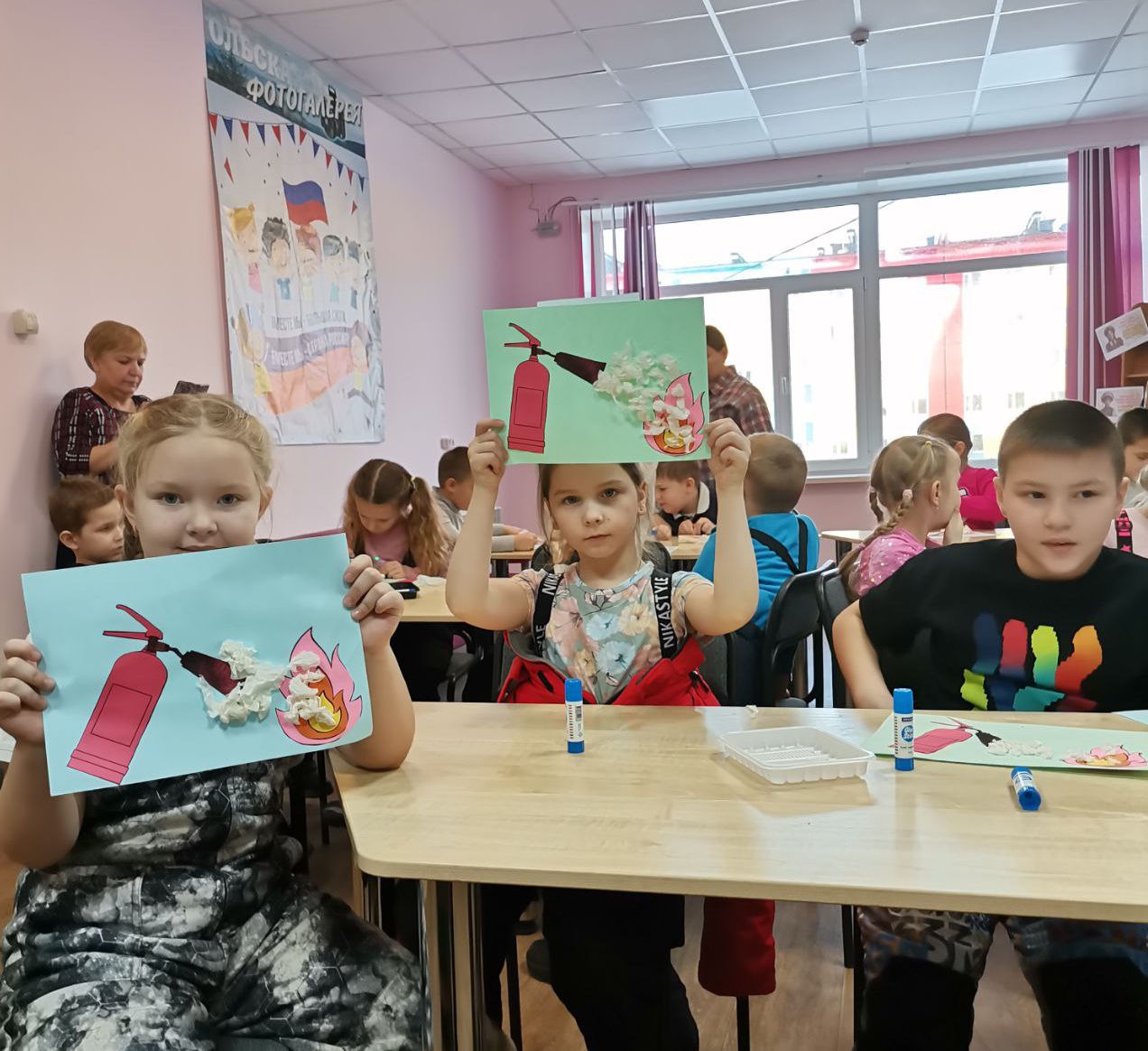 На занятии ребята узнали об истории возникновения огнетушителя, этапах его совершенствования – от стеклянной банки до современного в металлическом корпусе, а также много интересных фактов об устройстве и основных правилах его использования.