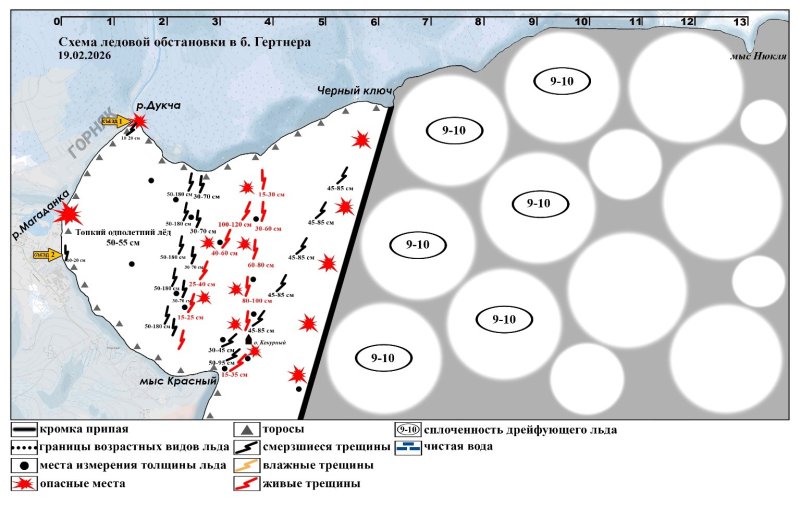 ЛЕДОВАЯ ОБСТАНОВКА В БУХТЕ ГЕРТНЕРА НА 19 ФЕВРАЛЯ 2026 ГОДА.