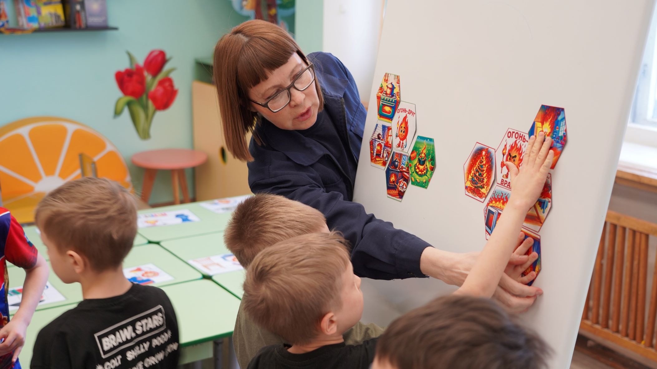 На завершающем испытании «Огонь – друг, огонь – враг» детям было необходимо правильно рассортировать изображения. Они определяли на какой картинке огонь является помощником человека, а на какой представляет опасность.
