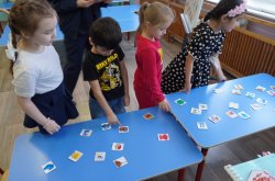 Первым испытанием от главного пожарного стала игра «Третий лишний». На представленных на столе карточках с изображениями различных предметов есть один пожароопасный. Ребятам было необходимо отыскать лишний и накрыть его картинкой «огонь». Чтобы приступить к выполнению этого задания, с воспитанниками были рассмотрены такие пожароопасные предметы, как электроприборы и проведена беседа об опасности электрического тока, который может являться, как помощником человека, так и его врагом.