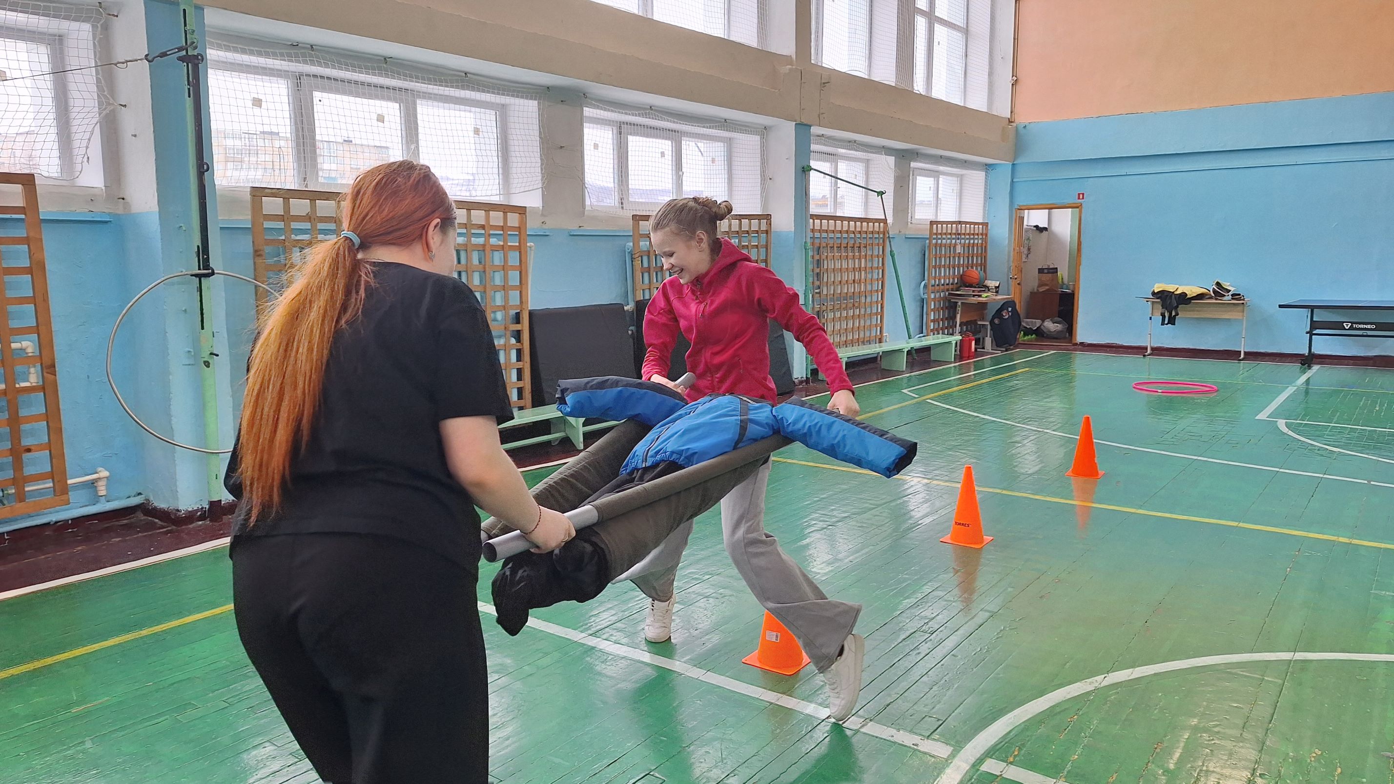 Четвертый этап включал в себя проведение спасательной операции. Команды по парам укладывали «пострадавших» на носилки, а затем преодолевали препятствия. Участникам было необходимо не только быстро справиться с заданием, но и аккуратно и бережно располагать «спасенного» на носилках.