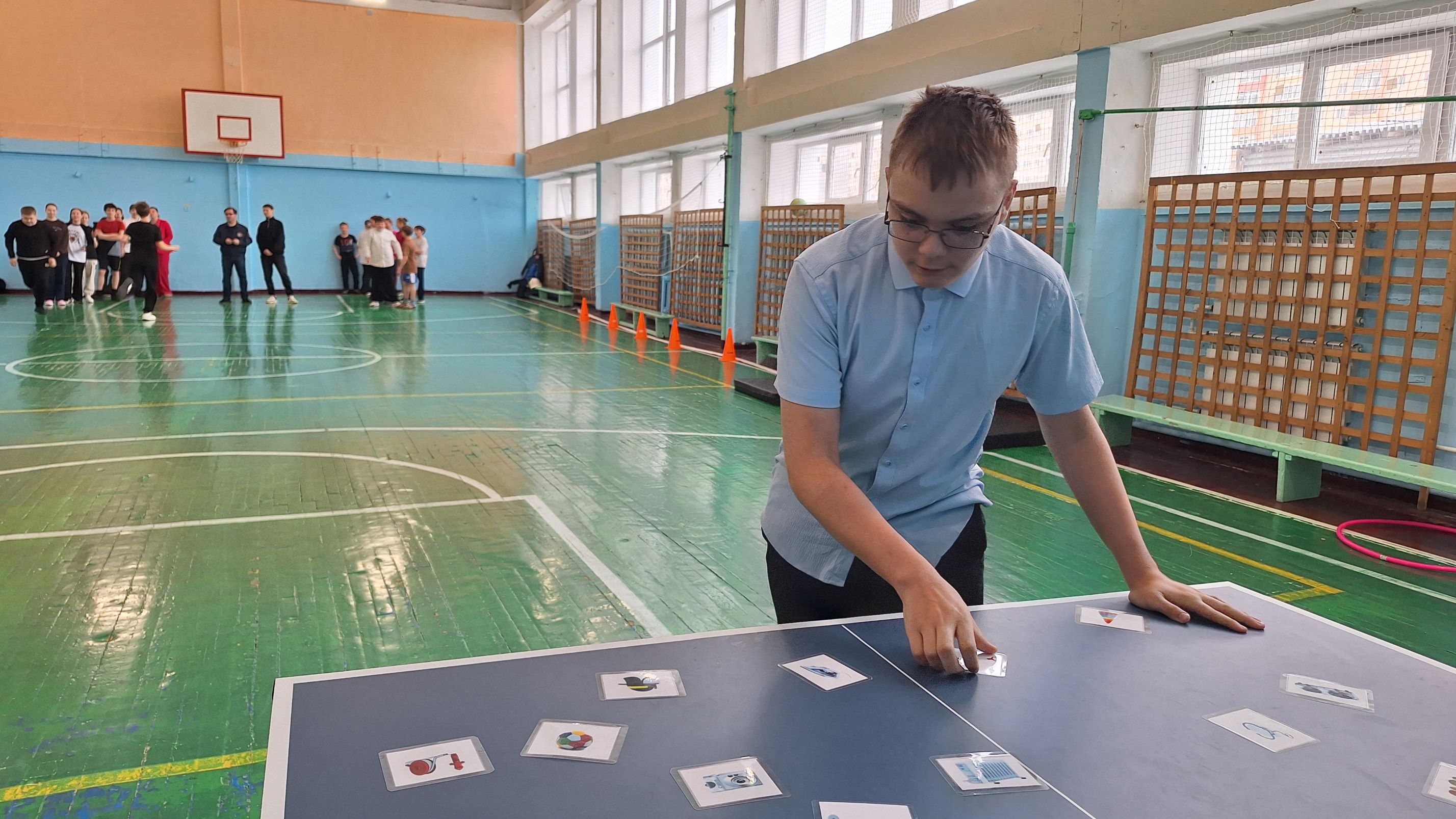 Эстафета состояла из 6 этапов, которые включали в себя задания на скорость, ловкость и знания пожарной безопасности. Так, на первом испытании двум командам было необходимо добежать до противоположной части зала, на которой располагались столы с карточками с изображениями различных предметов. Ребятам было необходимо собрать все карточки, связанные с деятельностью пожарных.