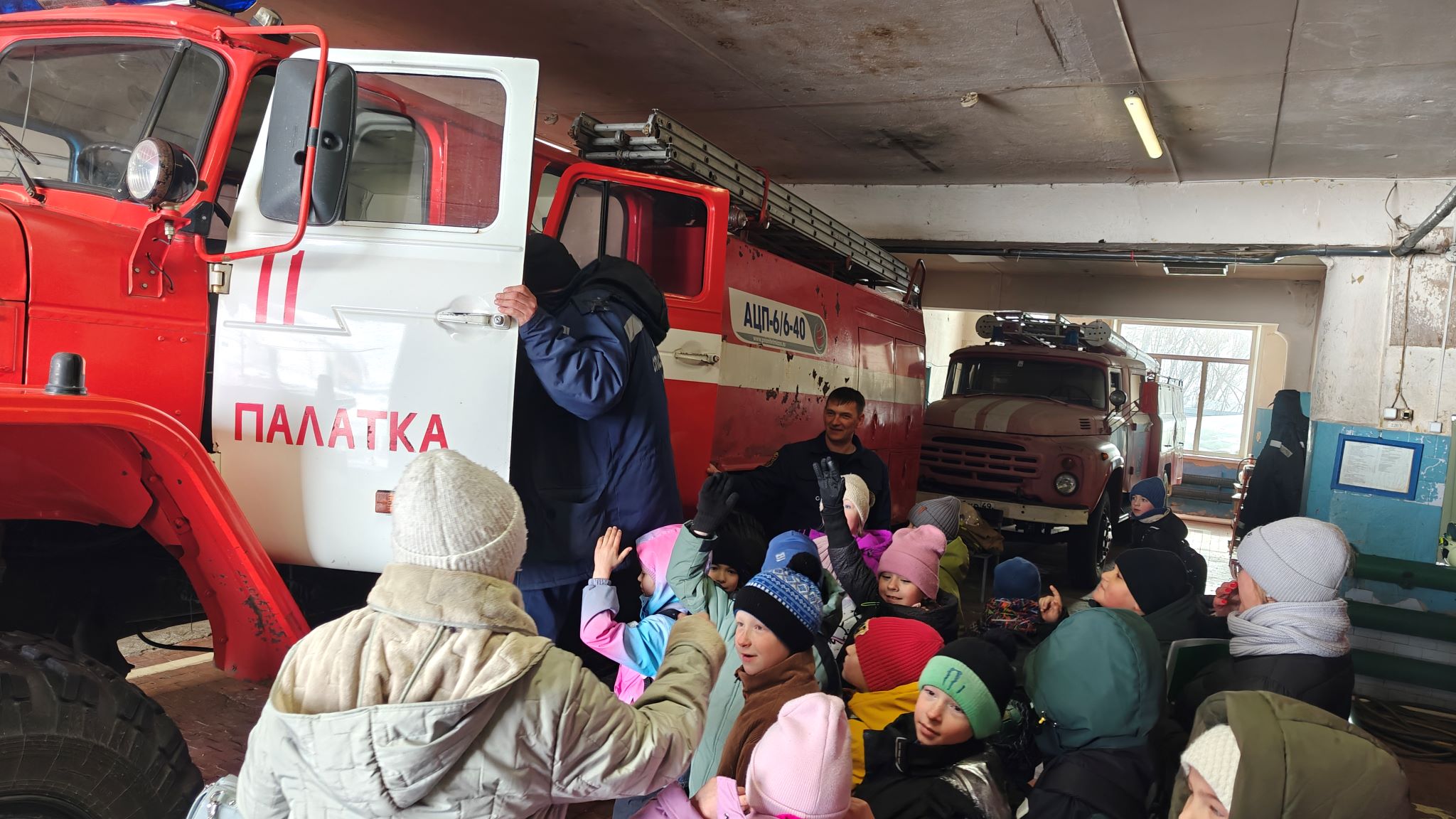 09 апреля 2026 года была в рамках урока профориентации проведена экскурсия в пожарную часть №11 для 2Б класса школы №1 п. Палатка. Инструктором, Ольгой Жаткиной, при встрече с детьми был проведен профилактический инструктаж. Поговорили о правилах противопожарной безопасности. Командир отделения, Виктор Вечкуткин, рассказал ребятам об имеющихся в распоряжении пожарной части пожарных машинах, показал, что с ними связано, как они работают, чем оборудованы.