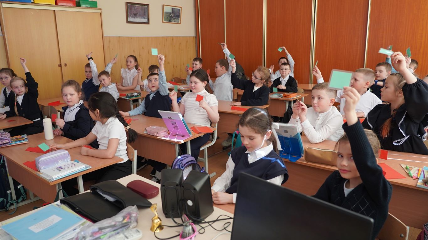 На закрепление новых знаний детям было предложено поучаствовать в увлекательных играх: они выбирали правильные ответы на слайдах и с помощью сигнальных карточек «запрещали» или «разрешали» правила пожарной безопасности. Также был представлен обучающий мультфильм. Он еще раз обратил внимание школьников на важность соблюдения правил пожарной безопасности.